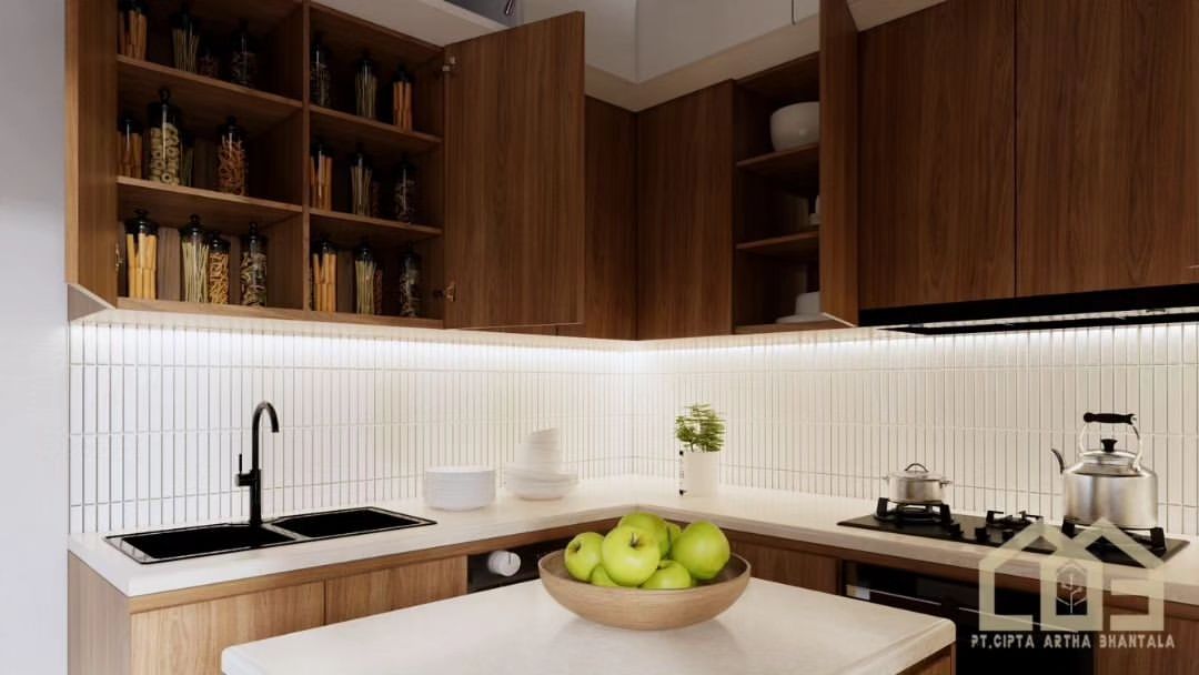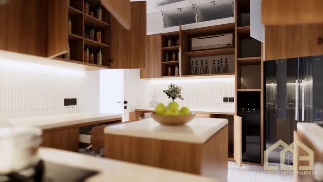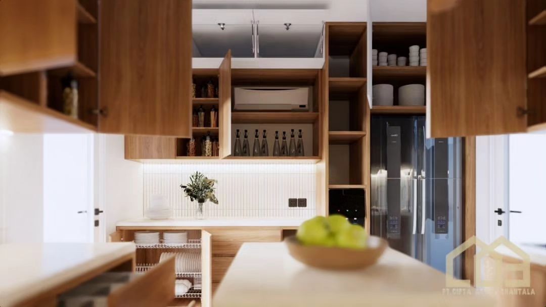The minimalist kitchen set is designed to offer simple beauty, optimal functionality, and comfort in every cooking activity. This minimalist design combines principles of simplicity and efficiency, creating an elegant and well-organized kitchen space.